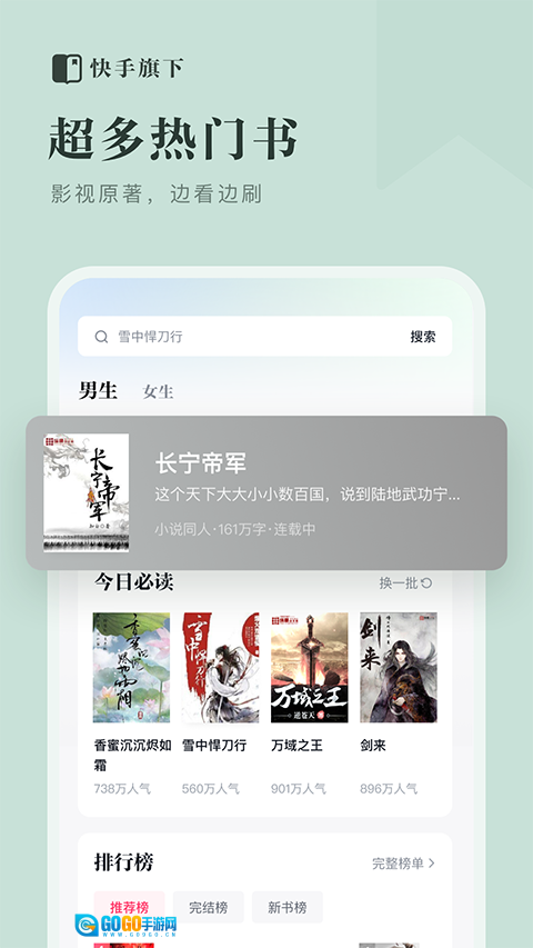 快手免费小说是一款汇聚海量精彩有趣小说阅读资源的应用程序。在这里,你可以轻松获取各类全新的阅读书籍资源,超多热门原创小说都汇集于此,最新连载的小说内容也会及时推送,让你不错过任何精彩的更新;该平台由北京快手科技有限公司研发,是专门为用户打造的小说阅读工具。每天都会有大量优质小说推荐,平台还对小说进行了丰富的类型分类,你可以自由挑选喜欢的小说阅读;对这款软件感兴趣的小伙伴可别错过,快来体验吧!