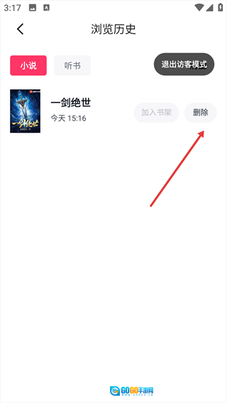 可以查看之前的浏览记录,点击小说旁边的【删除】按钮,即可完成删除操作。