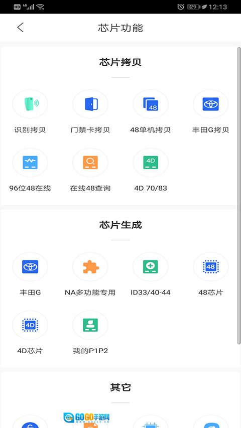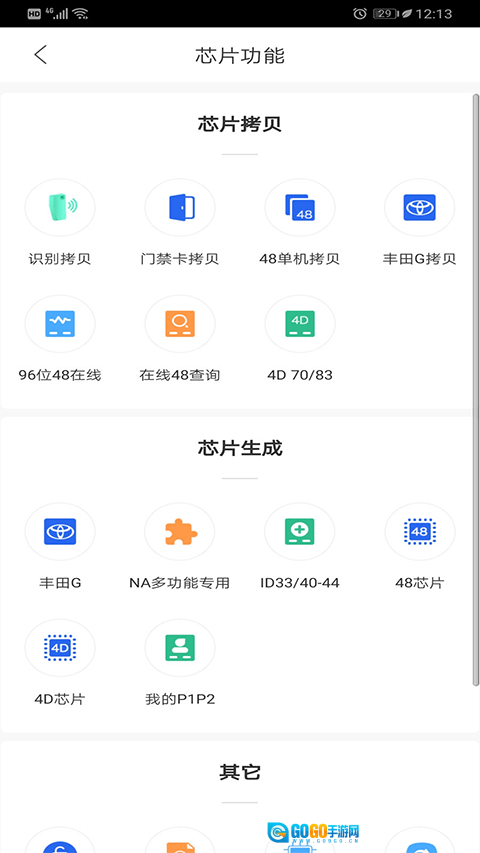 可实现拷贝识别,包括门禁卡拷贝、在线48查询等功能;支持芯片生成,如丰田G、48芯片、4D芯片等类型;同时具备模拟芯片、转接芯片等能力。