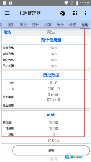 在【电池管理器】页面中,切换至【电池】标签页,就能查看【预计使用量】-【历史数据】等与电池相关的详细信息。