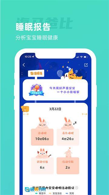 它具备不少实用功能,有大量的睡眠曲可以帮助宝宝入睡,并且还能够记录孩子的成长过程。