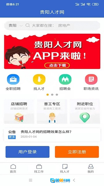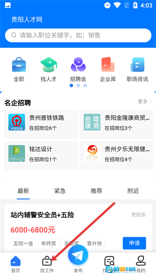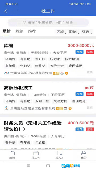 在【贵阳人才网】的首页,点击页面底部的【找工作】选项,即可进入职位列表页面,这个页面会展示最新、急聘等不同分类的岗位信息。