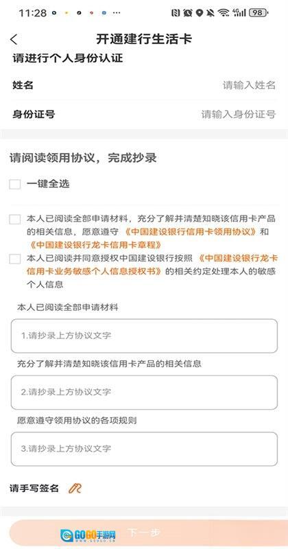 在输入银行卡号之后,还需要填写姓名、身份证号码、手机号码这类个人信息。