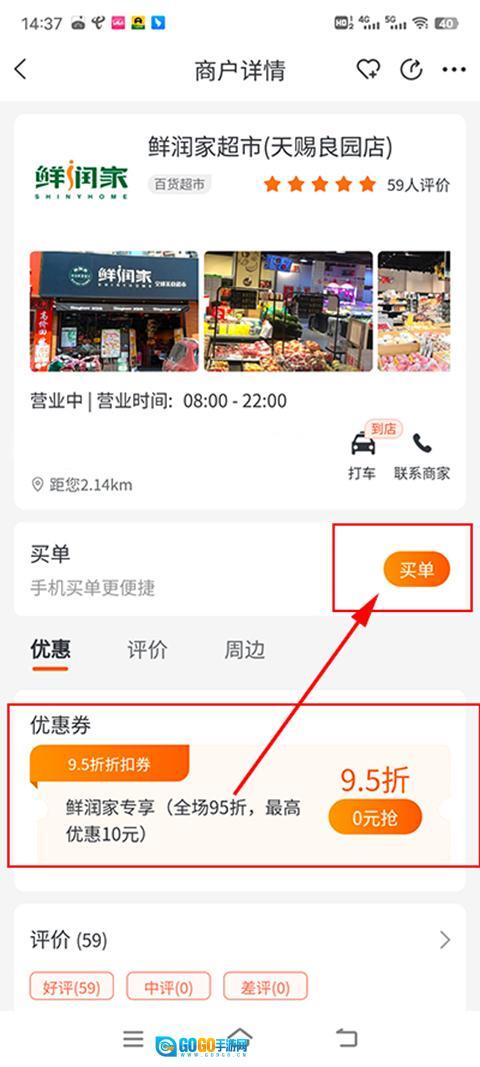 选择自己优惠券适用的门店进行购物。