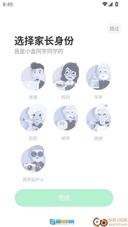 用户能够挑选对应的家长身份进入软件,也可以选择直接跳过。
