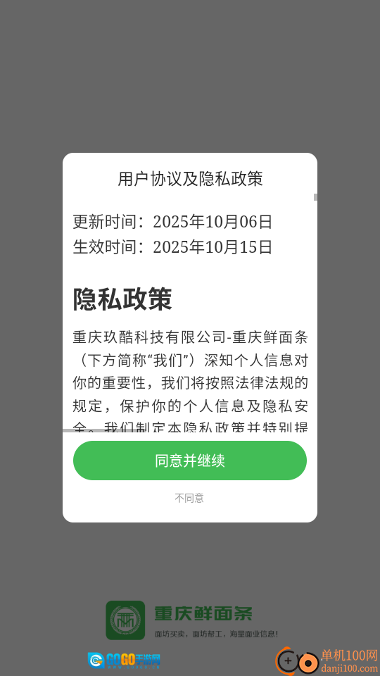 打开软件后,阅读“用户协议及隐私政策”,随后点击“同意并继续”按钮进入下一步操作。