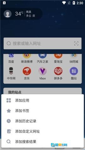 可以添加应用程序、书签、浏览历史、自定义网址,还能添加搜索结果等内容。