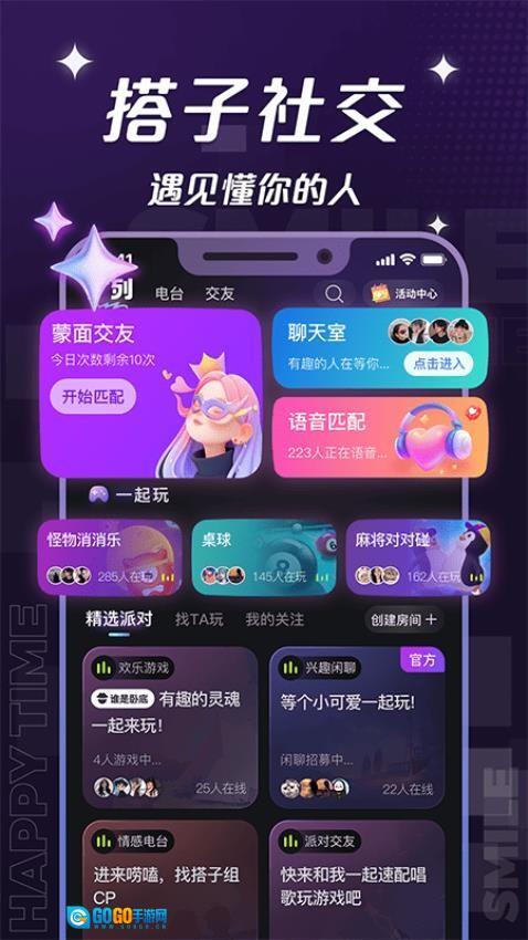用户也能够随时加入自己感兴趣的派对,和多人一起聊天互动、结交朋友。