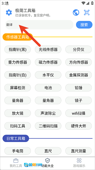 在功能大全界面里,你可以借助搜索功能找到所需的功能,像搜索“翻译”就能快速定位到对应的功能。