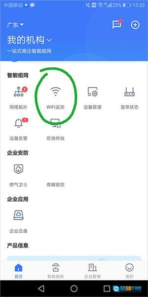请点击“WIFI监测”选项,在跳转后的WIFI监测列表页面中,选择您想要查看的WiFi并点击,即可进入该WiFi的详情页面。