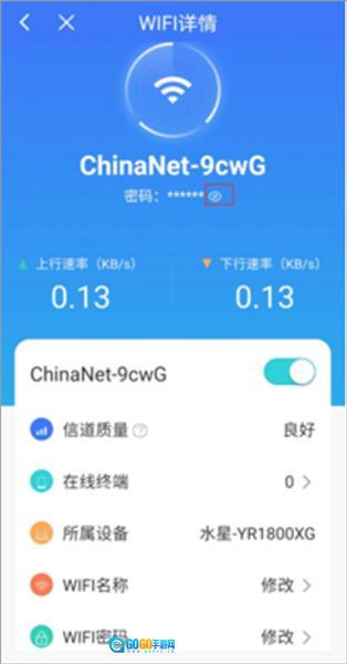 为保障信息安全,手机端已隐藏WIFI密码,您可点击密码旁的可视图标查看该密码。