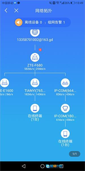 在您扫码完成设备绑定后,成功绑定的设备会出现在智能组网页或首页网络拓扑页面的拓扑图及设备管理列表里,您只需点击设备,就能查看其详细信息。智能组网页还会为您呈现本企业组网设备与在线终端的具体数量。