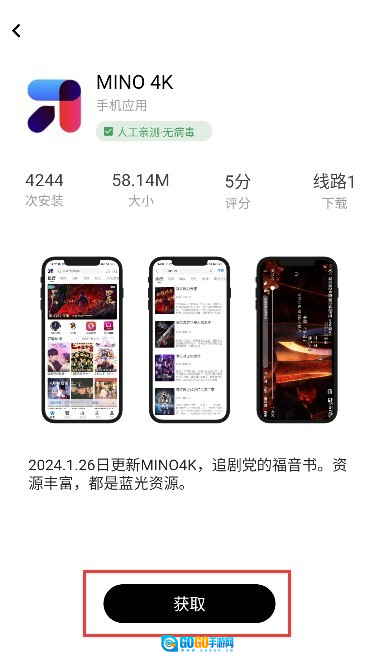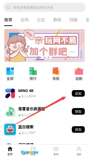 进入软件界面点击获取。