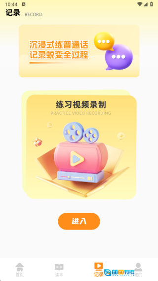 开启练习视频录制功能后,朗读指定内容时能回看发音口型,录制记录还可保存到个人学习档案里。