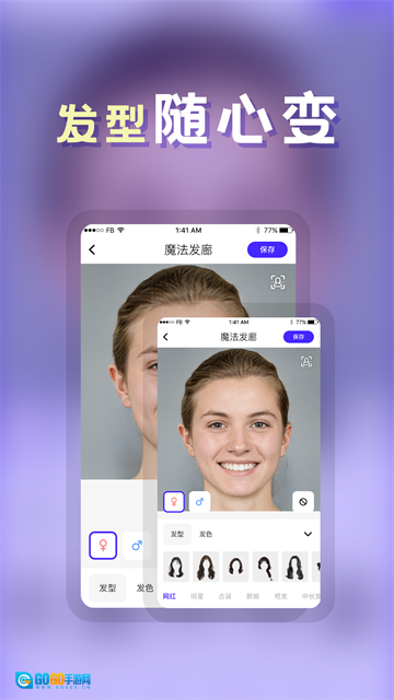 1、发型相机配备强大的美颜滤镜功能,可实现智能发型设计与脸型的精准搭配,还具备魔法自拍功能,能帮助用户轻松更换发型,只需一键拍照就能拥有百变发型!