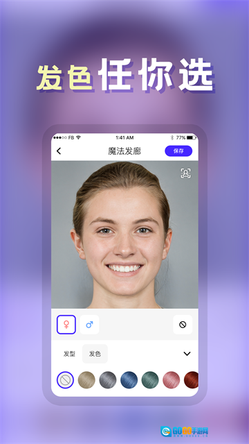 2、这款软件里有各式各样的发型,也包含你钟爱的发色,选好发型后还能搭配不同发色试试看效果。