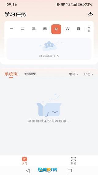 进入学习界面后,可依据日期浏览学习任务,同时也能看到课程内容的呈现。