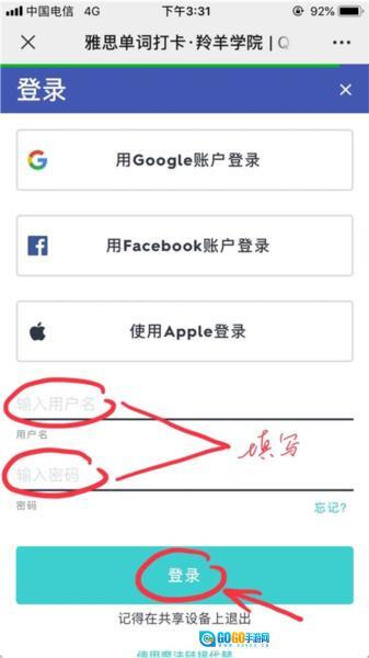 3、在登陆界面,输入刚刚注册账号时所使用的“用户名”和“密码”,之后再次点击“登陆”。