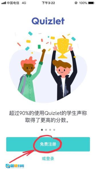 1、安装完成后,电脑桌面上会出现Quizlet的图标,点击这个图标打开应用,然后选择“免费注册”选项。