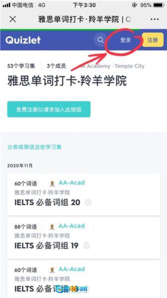 2、在微信中打开这个链接,接着点击页面右上角的“登录”选项。