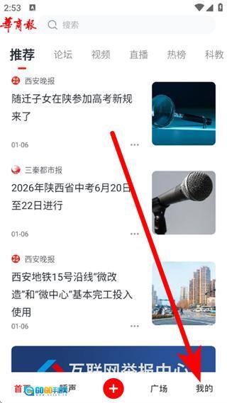 1、在华商头条首页,点击底部我的,进入个人页面。