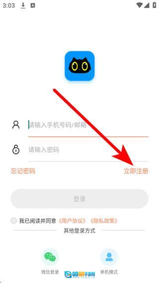2、在登录页面点击立即注册,进入用户注册页面。