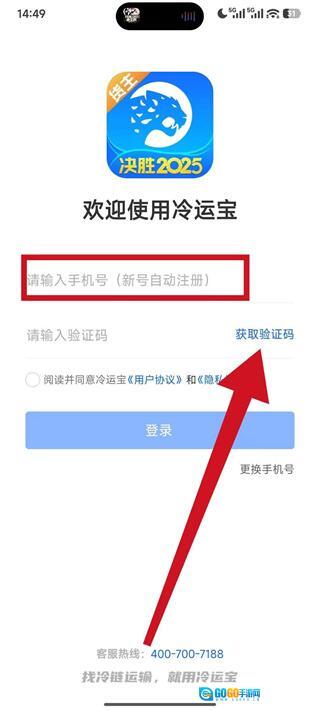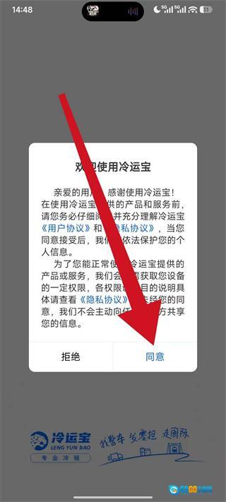 1、启动冷运宝应用,待协议弹窗出现后点击“同意”按钮,即可进入账号登录界面。