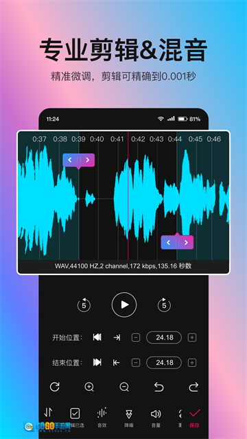 1.多轨编辑与混音:能够同时对多个音轨进行编辑,可完成对齐、分割操作,调整各音轨音量,还能添加混响、和声等音效,达成精度达0.001秒的混音效果。
