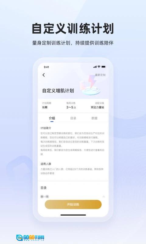 1.AI智能计划生成:输入身高、体重、运动基础等数据后,AI算法自动匹配训练方案,并随用户进步动态调整计划,避免训练plateau。