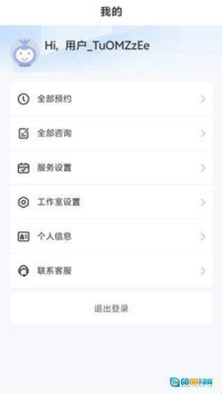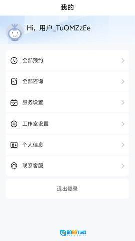 4、进入“我的”模块,可查看所有预约与咨询记录,也能直接进行退出登录操作。