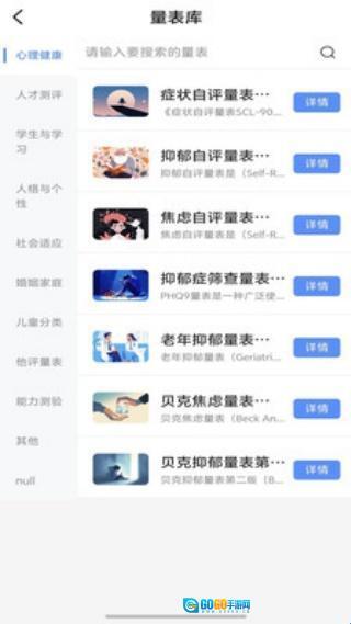 2、打开软件后,即可查看量库表,从中了解各类疾病的评量表,可随时查询详细信息。