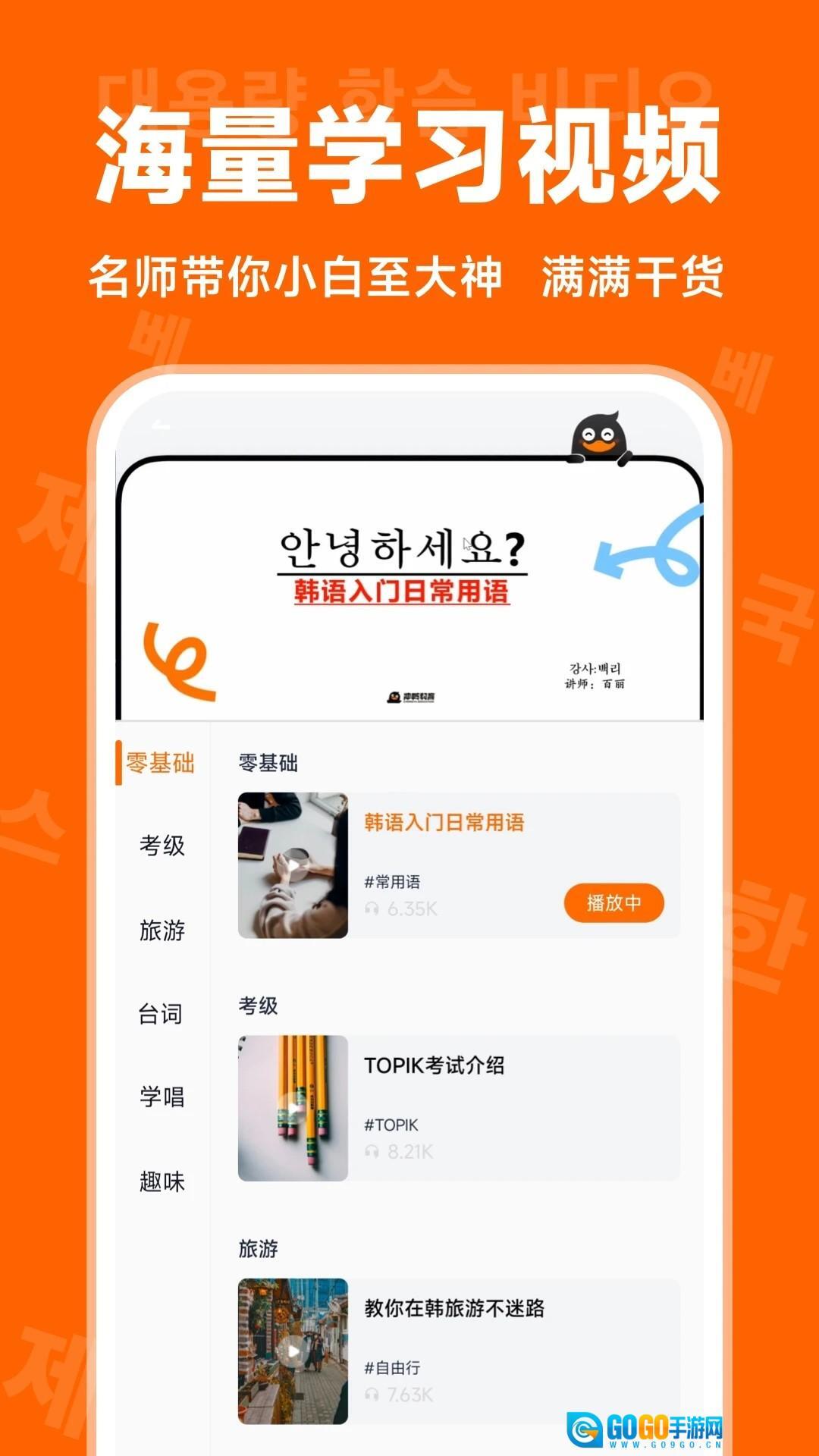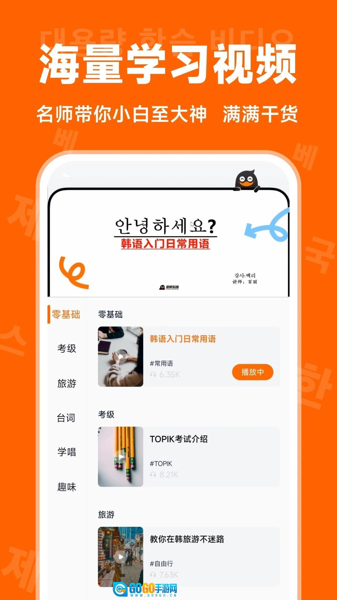 1、综合学习资源:覆盖韩语发音、词汇、语法、听力、口语等多个维度,助力用户构建系统化的韩语学习体系。