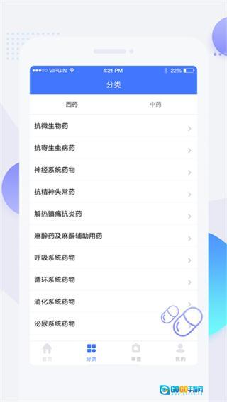 1、打开用药参考类应用,点击底部的分类选项,进入分类页面。