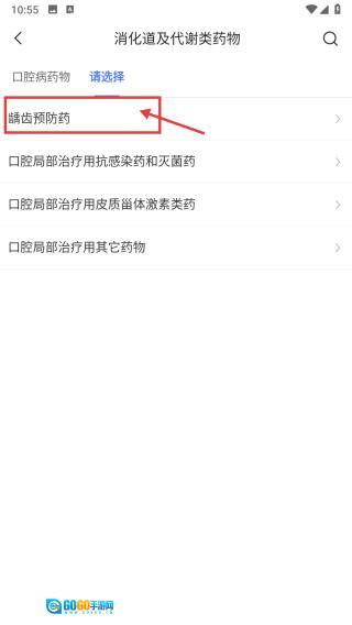 4、进入口腔病药物分类页面后,点击龋齿预防药这一选项,即可查看该类别药物的详细信息。