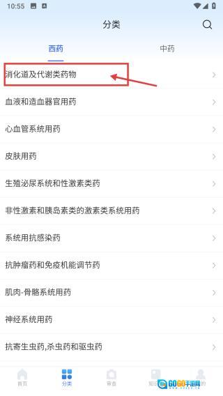 2、在分类页面中,选择“消化道及代谢类药物”这一分类并点击,即可进入该类别对应的药物列表页面。