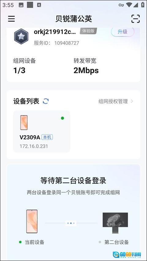 4、如需使用组网功能,需在另一台手机上登录相同账号;