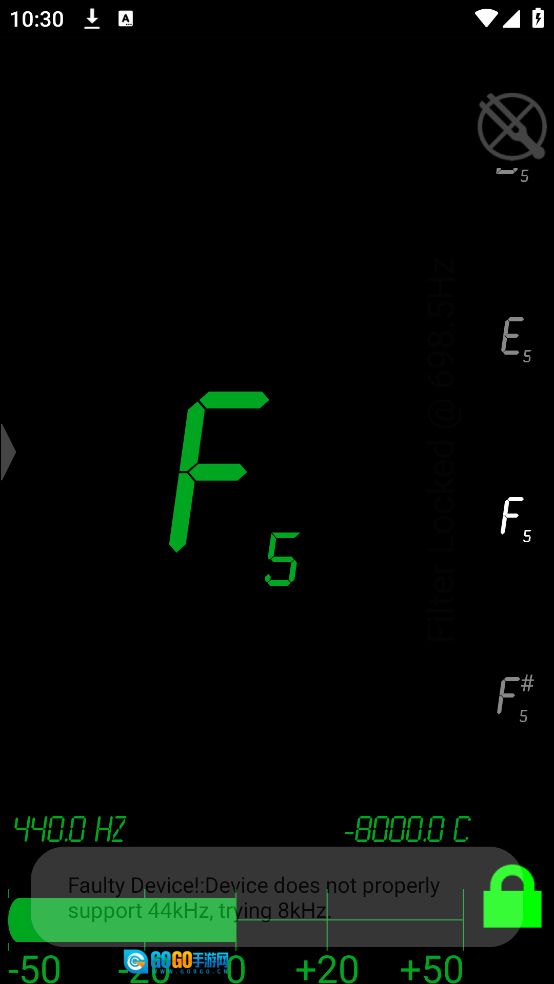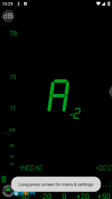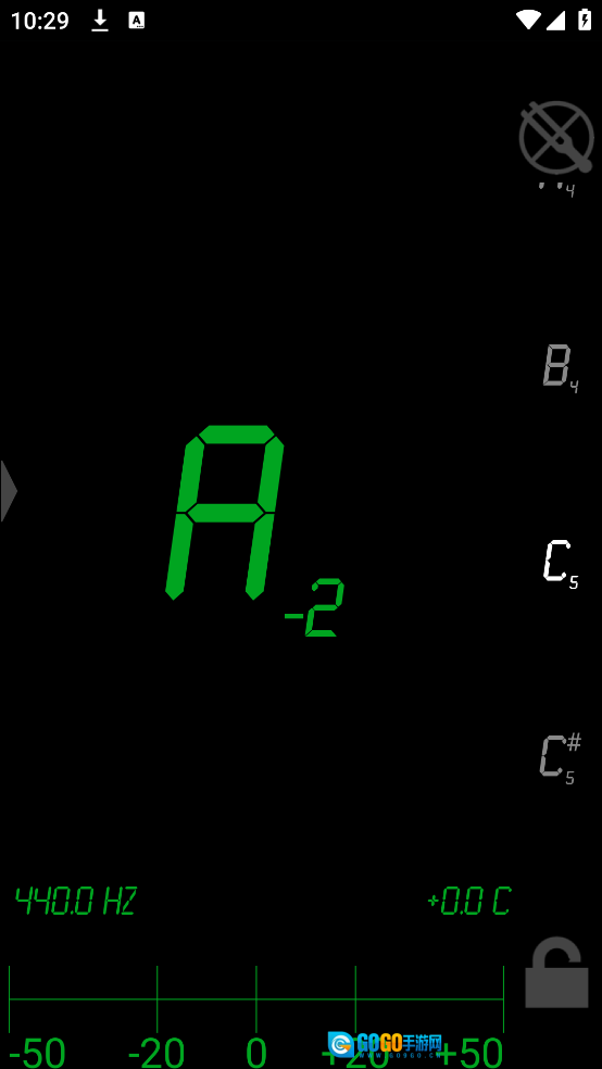 屏幕底部会实时呈现当前音调的精准**频率(Hz)**与**误差(音分)**数值。