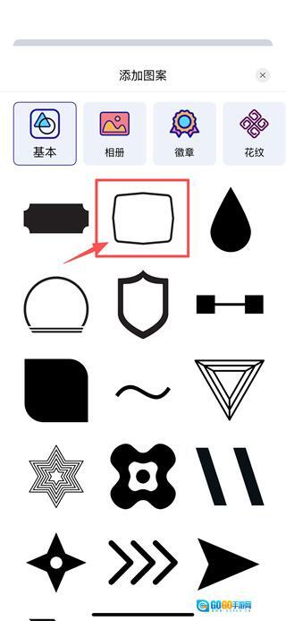 3、进入图案选择页面后,找到基本类别,从中选中方形轮廓图案,随后进入图案编辑页面。