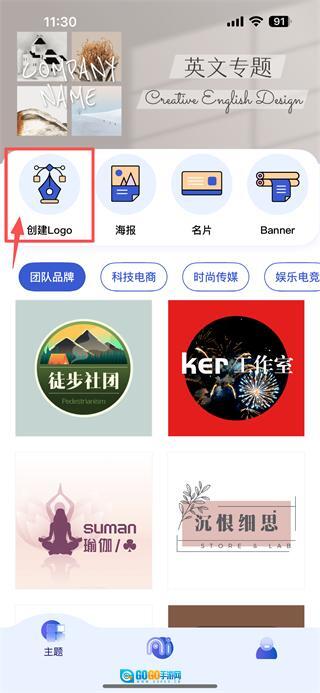 1、打开设计类别,点击创建Logo的功能选项,进入Logo设计的编辑界面。