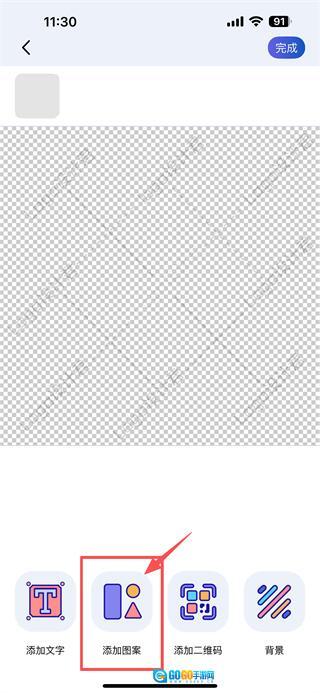 2、进入Logo设计编辑界面后,点击“添加图案”选项,即可跳转至图案选择页面。