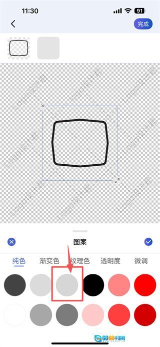 4、进入图案编辑界面后,把图案颜色选定为浅灰色,以此完成该Logo图案的颜色配置。