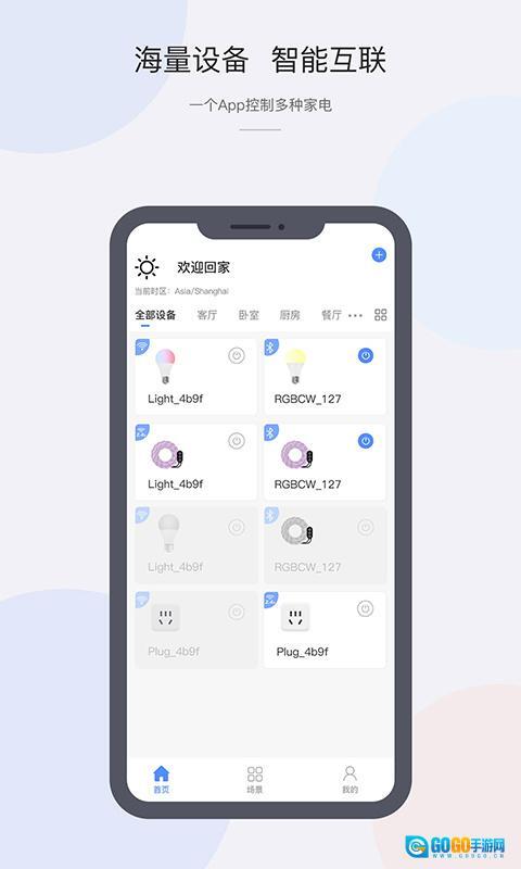 1、不管何时何地,都能对您的智能设备进行管理与控制。 2、兼容插座、开关、窗帘、灯泡、灯带等各类设备的接入。