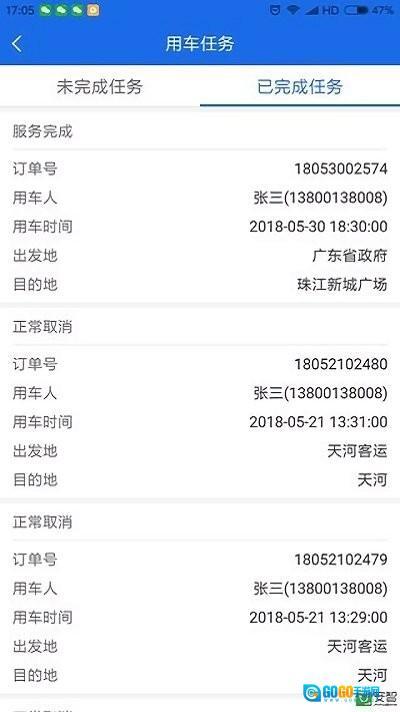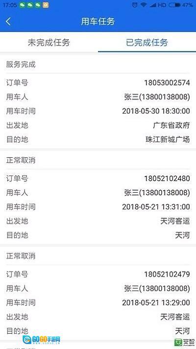 5、在已完成任务的界面里,用户能够查看到各类用车的详细信息。