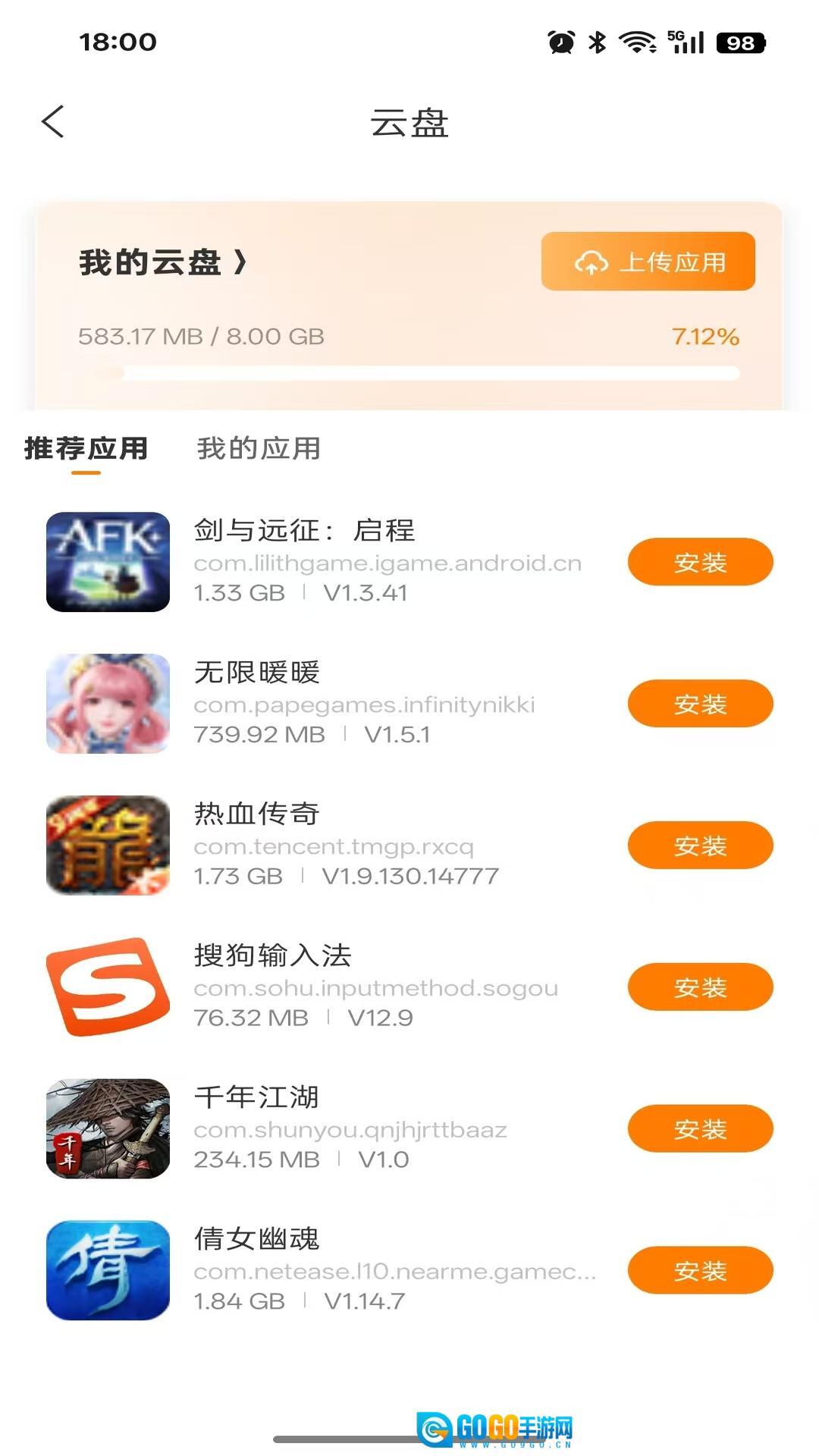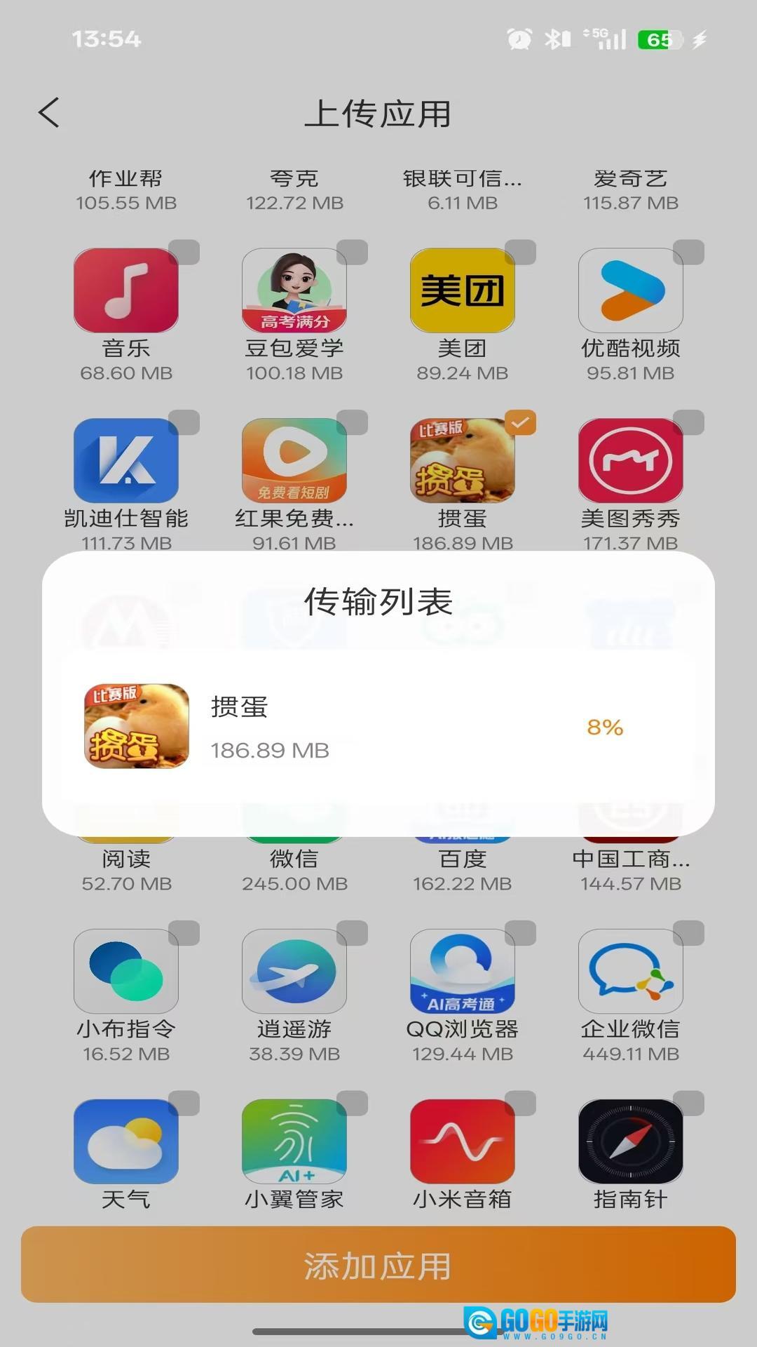 点击上传:选择“上传软件”选项,把要安装的APK文件或者应用程序直接进行上传操作。