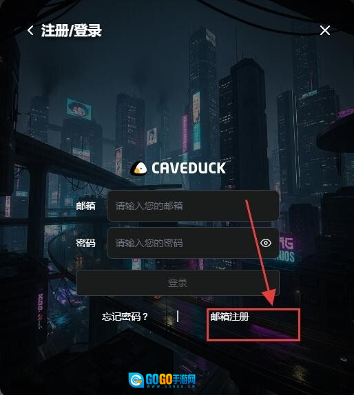 2、如果没有账号,选择“邮箱注册”。