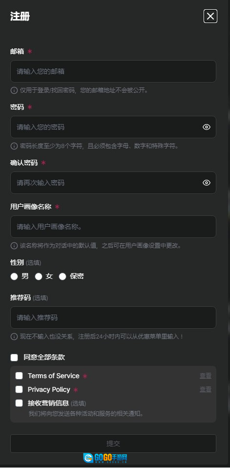3、填写注册信息提交即可完成账号创建。