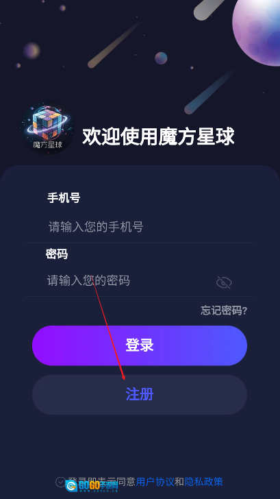 2、填写手机号完成注册