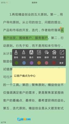 1.笔记功能:支持在阅读过程中添加笔记,支持多种标注方式(如直线、波浪线、荧光笔等),让您的阅读更加深入。
