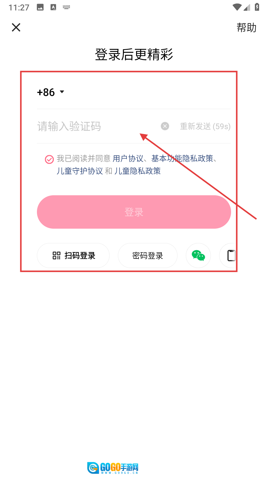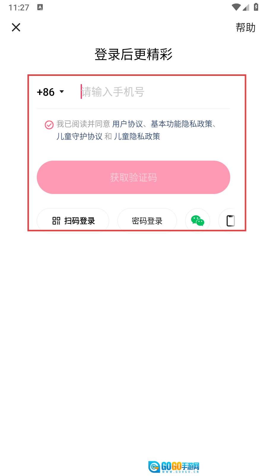 在登录界面,输入手机号并勾选同意相关协议后,点击【获取验证码】按钮,即可进入验证码登录流程。