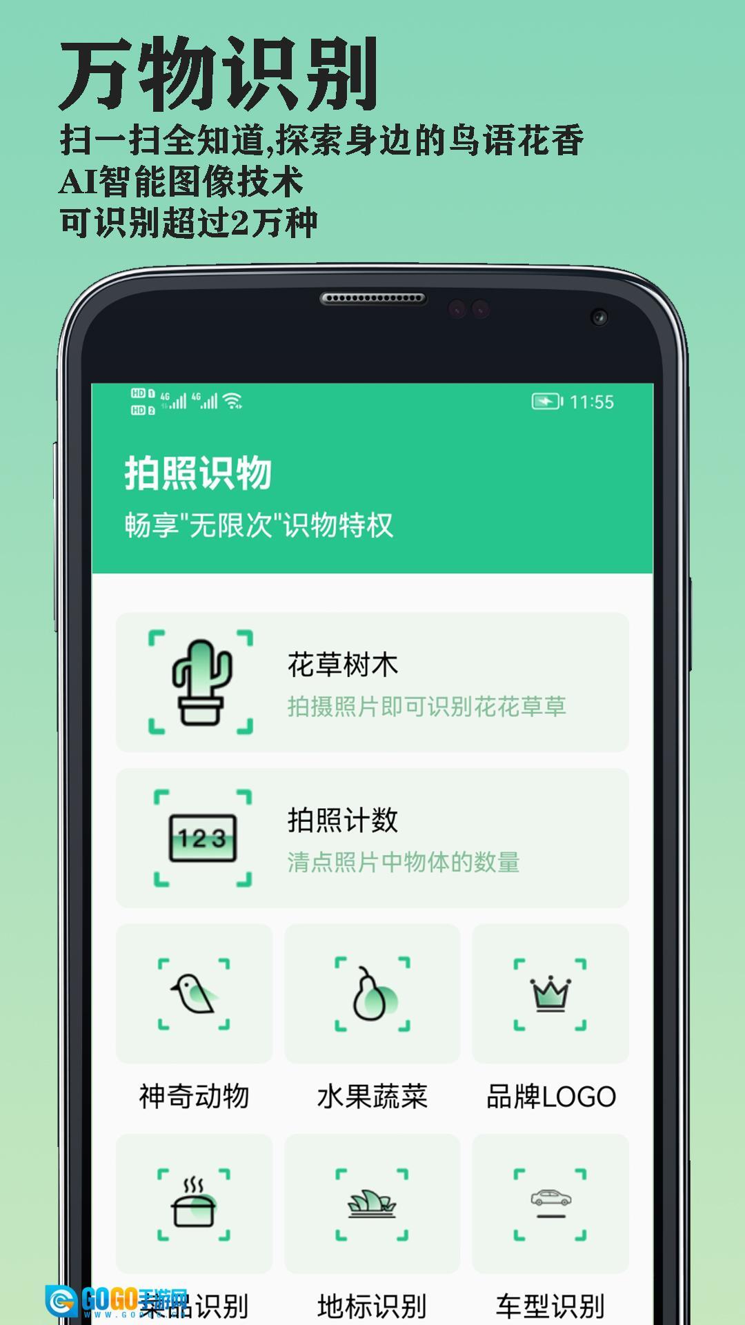 1、用户既可以借助手机摄像头直接拍摄物体完成识别,也能够从相册里挑选图片上传来进行识别。